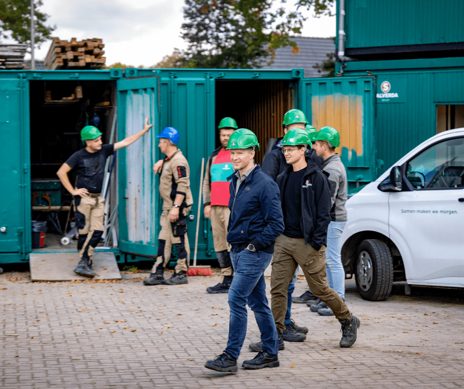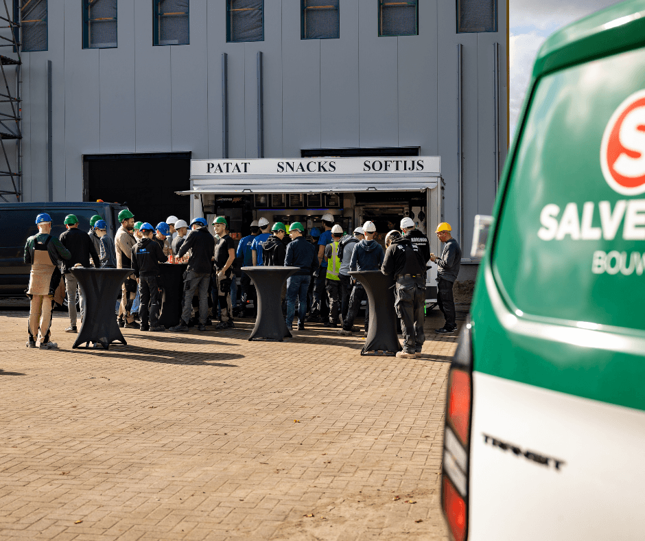 In ’t Harde, op een steenworpafstand van ons kantoorpand, bouwen we aan iets heel bijzonders: onze eigen, gloednieuwe timmerwerkplaats. De plek waar vakmanschap, ambacht en innovatie al sinds 1964 samenkomen, krijgt een upgrade. Want na ruim 60 jaar is het tijd voor een werkplaats die net zo toekomstgericht is als onze projecten. Afgelopen vrijdag hebben we het hoogste punt bereikt. Dat moest natuurlijk gevierd worden. Alle collega's en onderaannemers die aan dit project werken, kwamen samen om even stil te staan bij deze mijlpaal. Nu is pas echt goed te zien hoe groot en indrukwekkend het pand wordt.