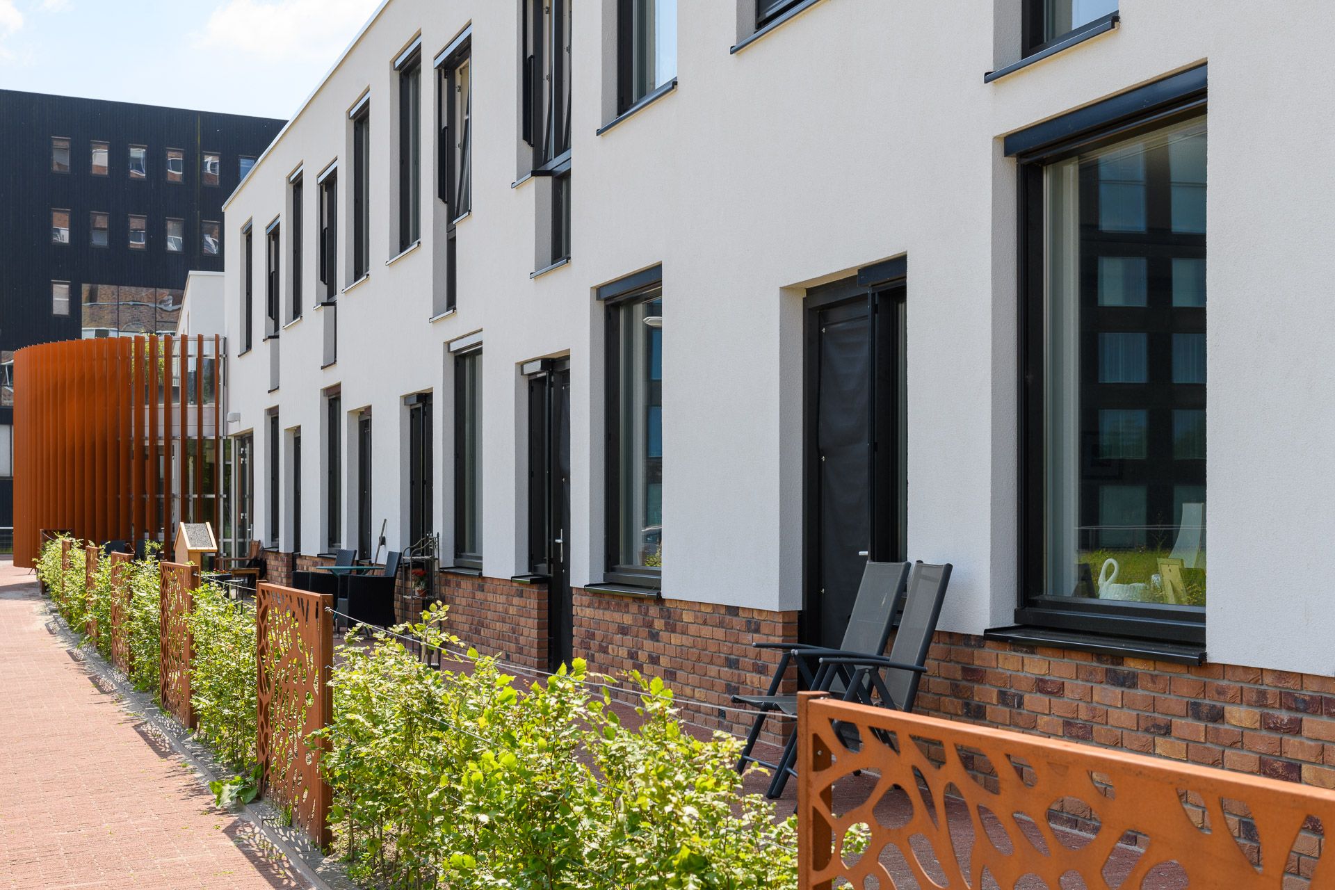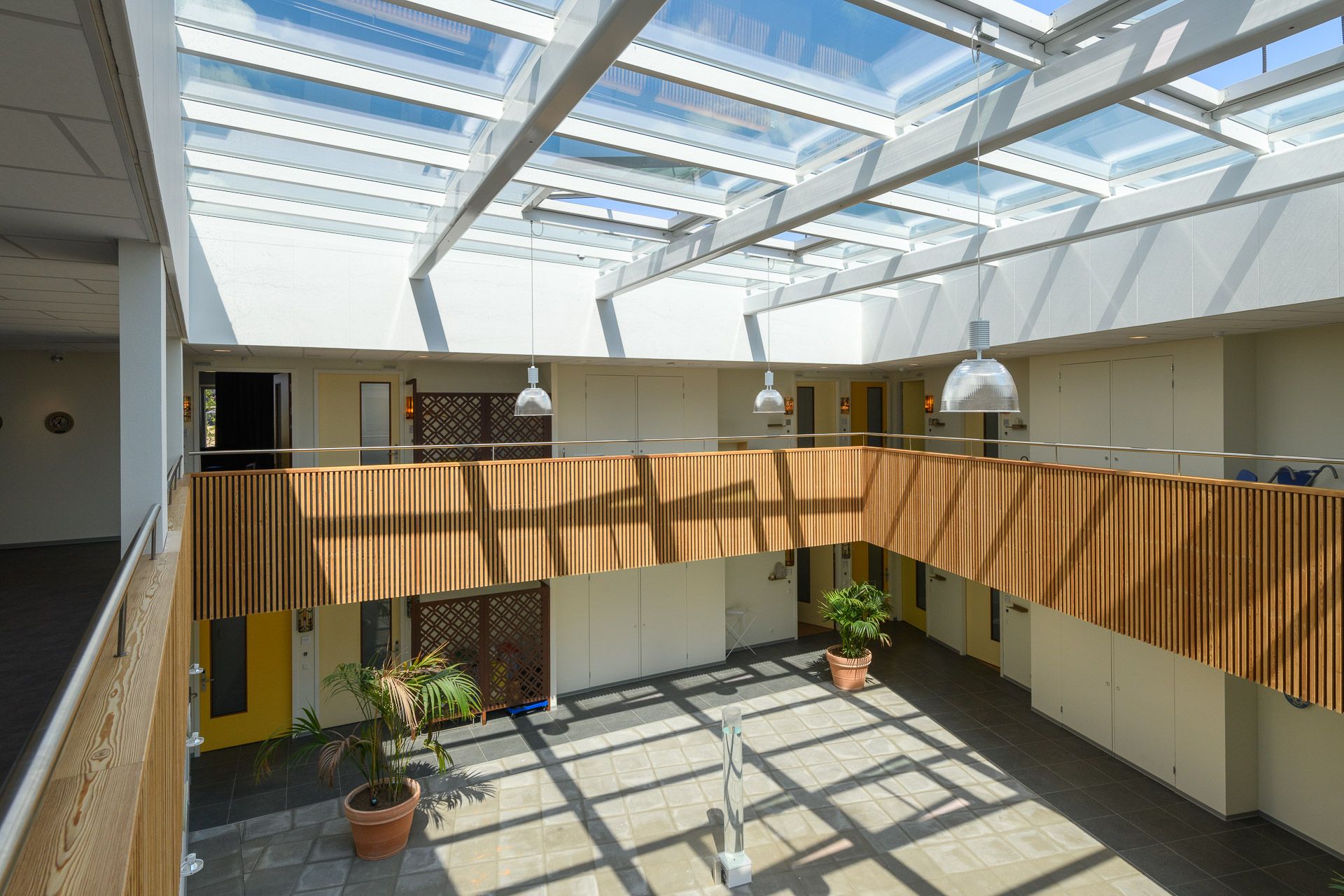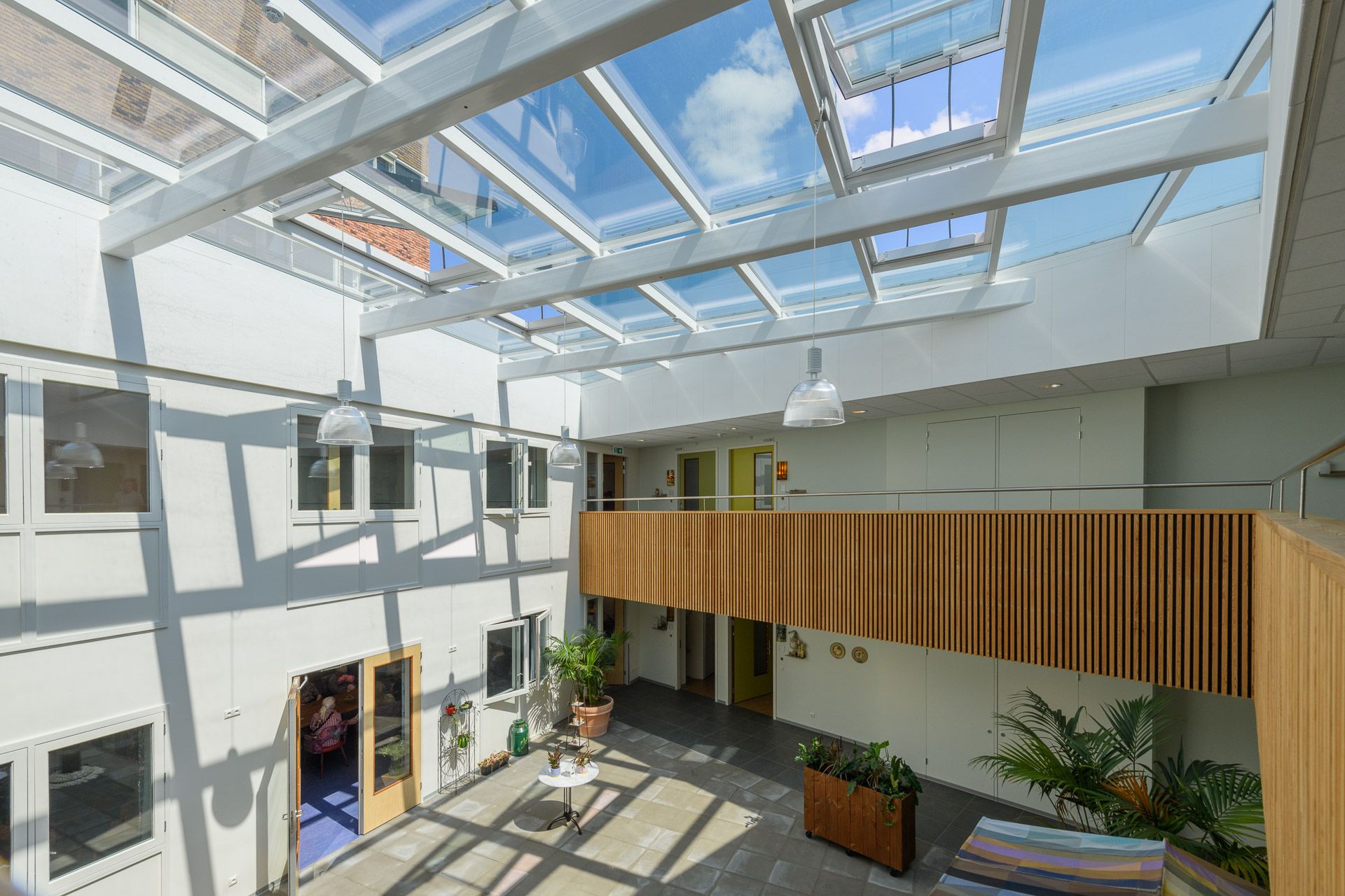 In de nieuwbouw werden 4 gezamenlijke woonkamers gerealiseerd, die aan de 40 appartementen grenzen. Alle woonkamers en appartementen zijn te bereiken via een atrium.